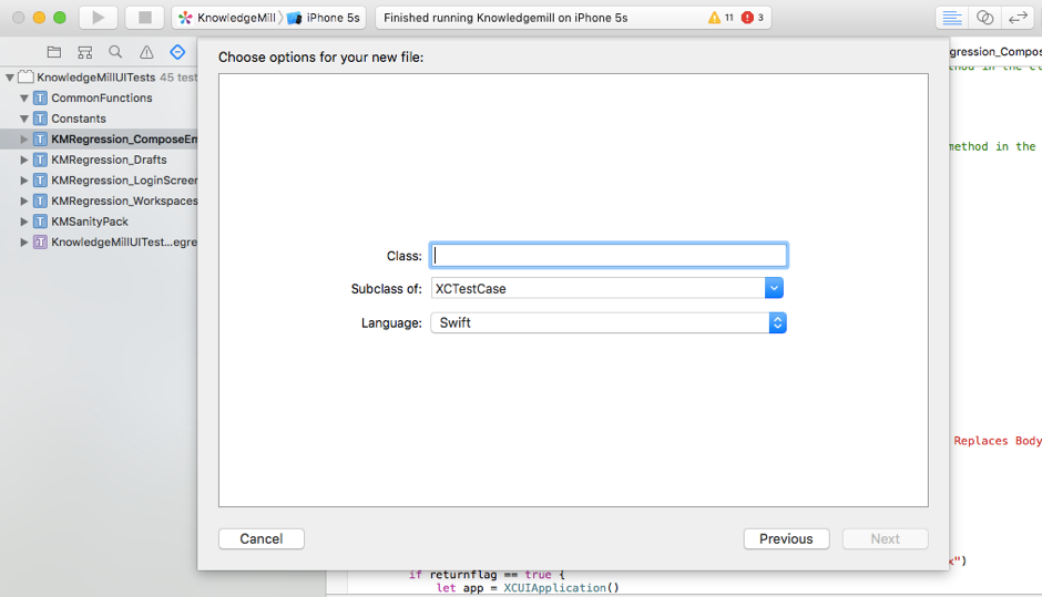 You can add multiple test classes to your project in order to enhance your scope of testing. Swift works on the OOPS concept, so you can inherit methods from across different test classes in order to cover your testing scenarios. Typically, we would like to keep separate classes for separate pages in our target app in order to follow the Page Object Model (POM). Here’s how you can add a new UI test class to your test project:
